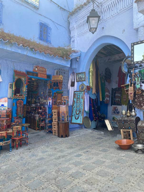 The following day, we visited the blue city of Chefchaouen, which was located in the mountains about an hour from our hotel This city ‘blue’ me away the colours were so vibrant, and all of the stalls were selling beautiful products I ended up buying a sequined cushion cover and some beaded earrings We had a guided tour by a local guide called Toto, who claimed he was friends with Prince William and David Beckham on Facebook!