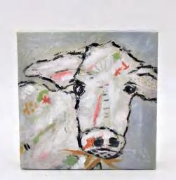 7x1.4x5.5" Framed Table Art, Cow in Poppies, Black Metal Frame ©Tawnya Norton