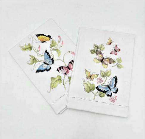 13x20" Handpainted Teatowel, Black Vases with Green/Gold Flowers, 4 assorted