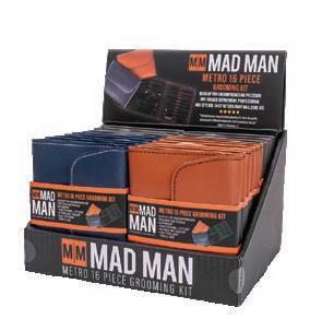 This stunning zippered case contains a side comb, nail tools, mirror, one sided lint brush, bottle opener, and a shaver. All the essential items for the man on the go. Men require just a few must have pieces and Mad Man has got them all in one handy case.