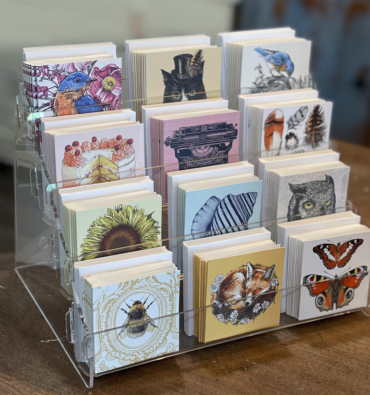 Complimentary with the purchase of 144 cards. This beautiful countertop acrylic display piece holds 144 mini cards! Choose 12 designs and order a quantity of 12 each.