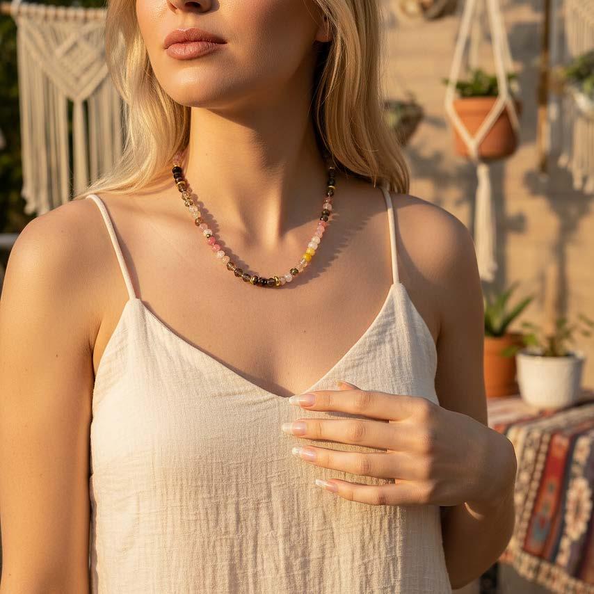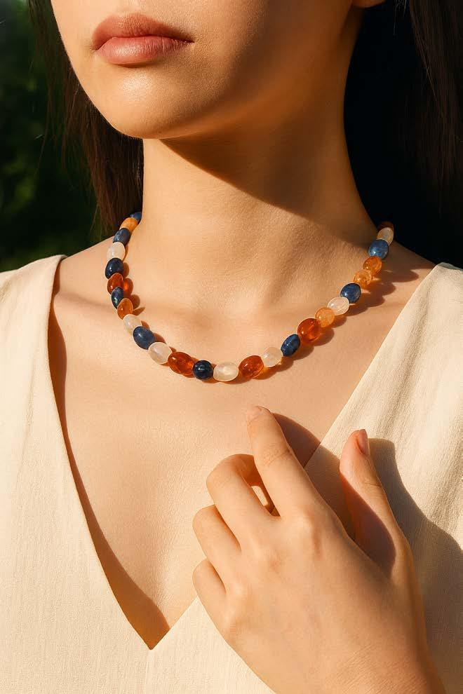 Elevate your neckline with our artisanal handcrafted necklaces, meticulously designed with a symphony of natural stones, each piece telling a unique story of elegance and connecting you to the raw beauty of the Earth.