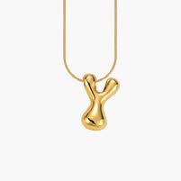 Add a bold, radiant accent to your style with the Golden Bubble Letter Rope Necklace, featuring glossy gold bubble letters and a textured rope chain that blends playful charm with timeless elegance.