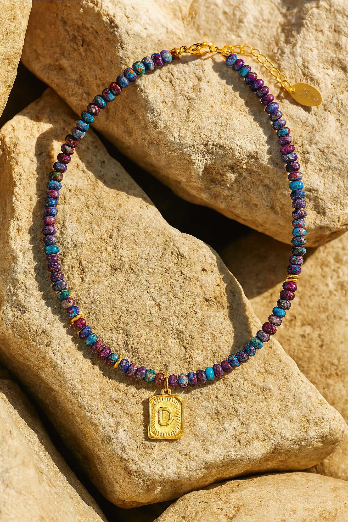 Add a pop of elegance with the Purple Imperial Jasper Letter Necklace—rich natural stones paired with a bold gold initial for a stylish, distinctive look.