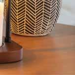 Featuring a black matte stem, rich patterned wood base, and metallic shade. Creating a tasteful yet simplistic design that adds a touch of elegance to any room. 1. 2. 3.