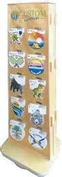 Our 9 Arm Flag Display ts into pegboard or slatwall, and each of the 9 arms holds several Minis, Monograms, Large Flags, or Mailbox Makeovers.