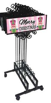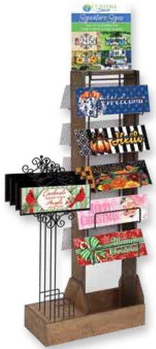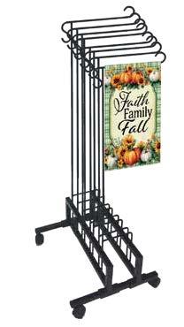 Mailbox Makeovers display also holds coordinating Large Flags and Mini Flags. Sturdy caster make it easy to move around your store!