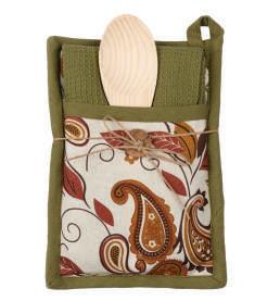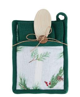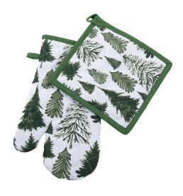 2 PIECE GREEN TREES OVEN MITT & POT HOLDER SET 95% COTTON, 5% LUREX