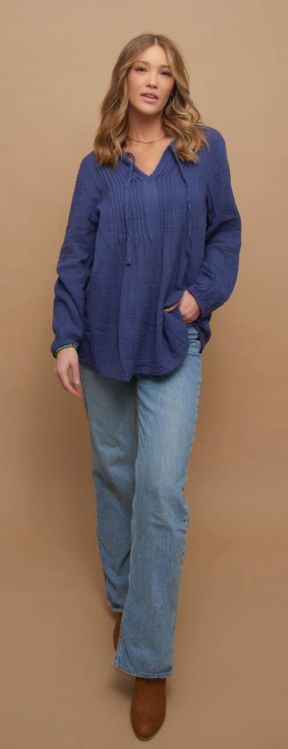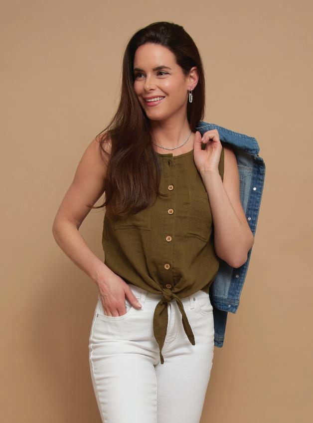 Our chambray dresses, tanks, and pants are made from 100% Tencel - a natural fiber known for its silky-soft feel, breathability, and gentle drape that flatters every figure.
