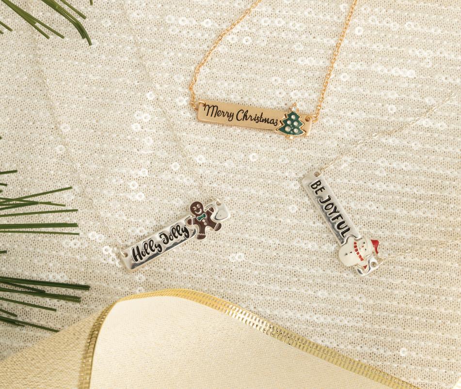Add a little sparkle, a little jingle, and a whole lot of cheer to any holiday look with our whimsical Christmas-themed necklaces.