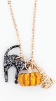 Enjoy the magic and mystery of Halloween with necklaces & earrings featuring spooky motifs of black cats, pumpkins, skeletons, ghosts, and more!