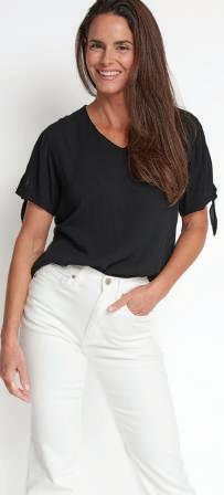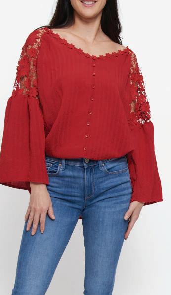 Brushed Jersey | 95% Polyester, 5% Spandex • SELENA HENLEY TOP