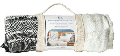 Easy to style in the home or on the go, our indoor/outdoor pillows & throw blankets are made from recycled plastic bottles and are UV treated for fade resistance. Each pillow comes vacuum packed with a premium quality polyester fill insert and each throw comes with a removable carrying strap for on the go travel! Pillows and throws come retail-ready with custom packaging!