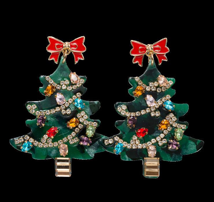 Acrylic Christmas Tree Earring with Multi Crystals, 2.75” Top to Bottom 797429819688