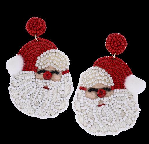 JM70679E-4 2Pc Min. $12ea. Red, White Beaded Santa Hat Earring, 2” Top to Bottom