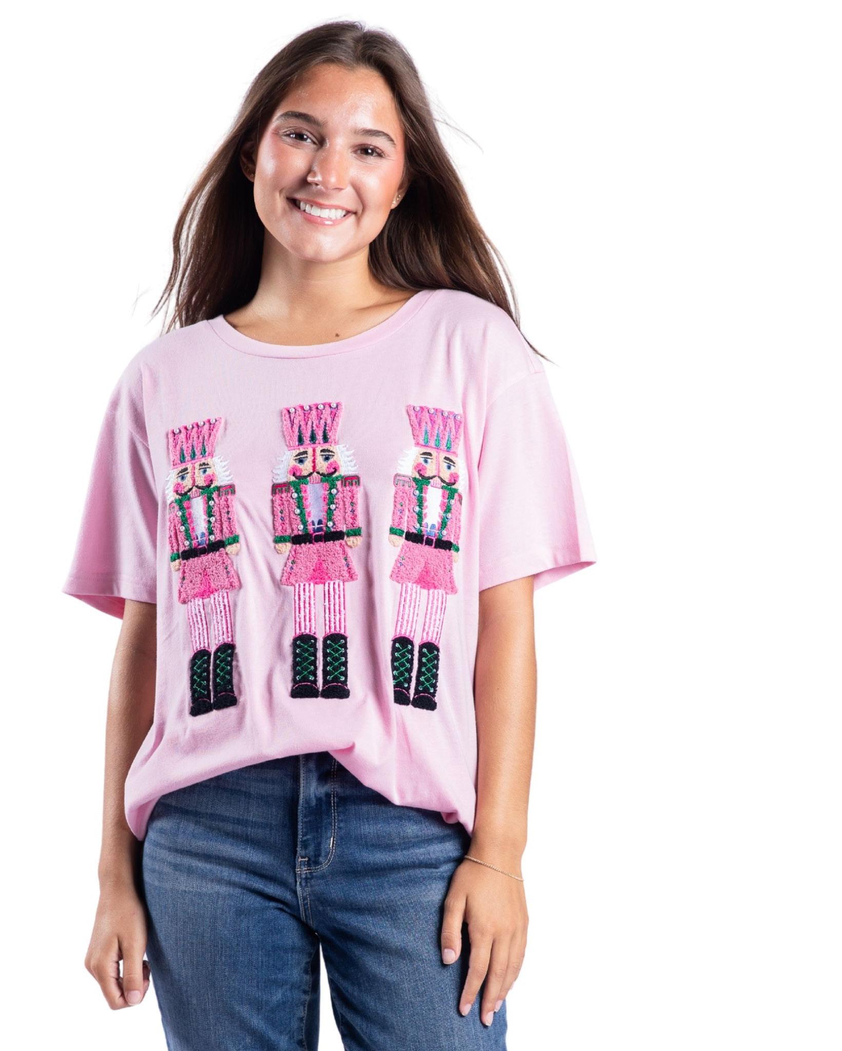 JM70679E-1 2Pc Min. $12ea. Pink, White, Green Beaded Nutcracker Earring, 3.5” Top to Bottom