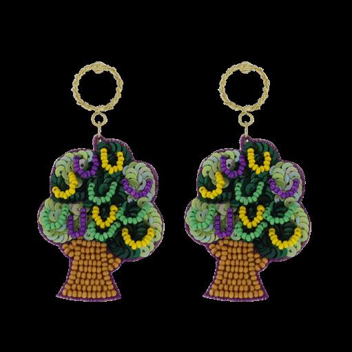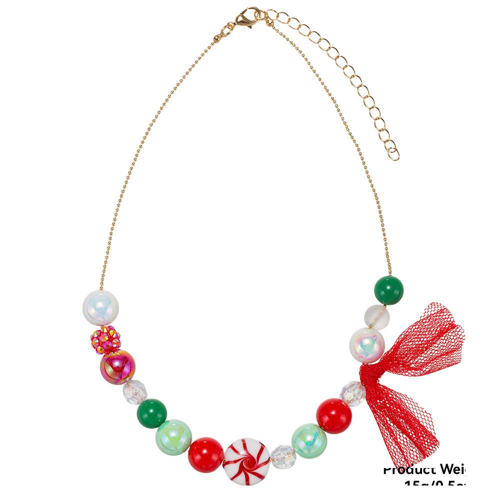JM70679E-3 2Pc Min. $12ea. White, Red, Green Beaded Tree Cake Earring, 2.5” Top to Bottom