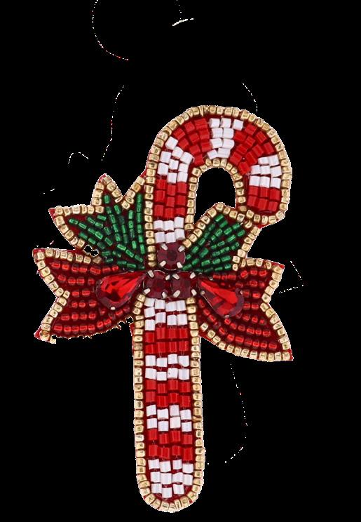 JM70678E-7 2Pc Min. $7.50ea. Enamel Candy Cane with Bow Earring and AB Crystal Post, 2” Top to Bottom