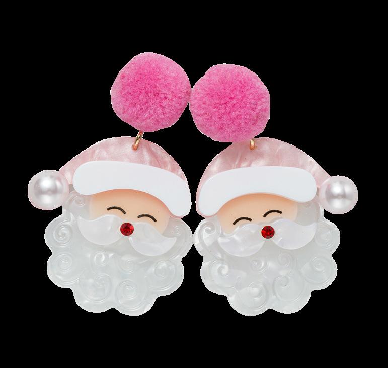 Very Merry! Earrings JM70678E-9 2Pc Min. $7.50ea. Acrylic Santa Claus Earri ng with Pink Pom, 2” Top to Bottom