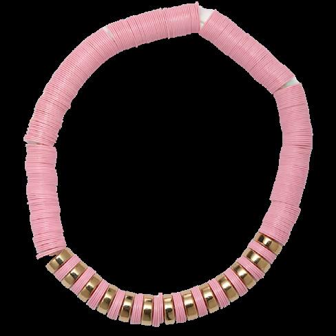 Kids 18k Gold Plated Chain Bracelet with Light Pink & “XOXO” Epoxy Pendant, 6” Around with 2” Ext., .25” Pendant