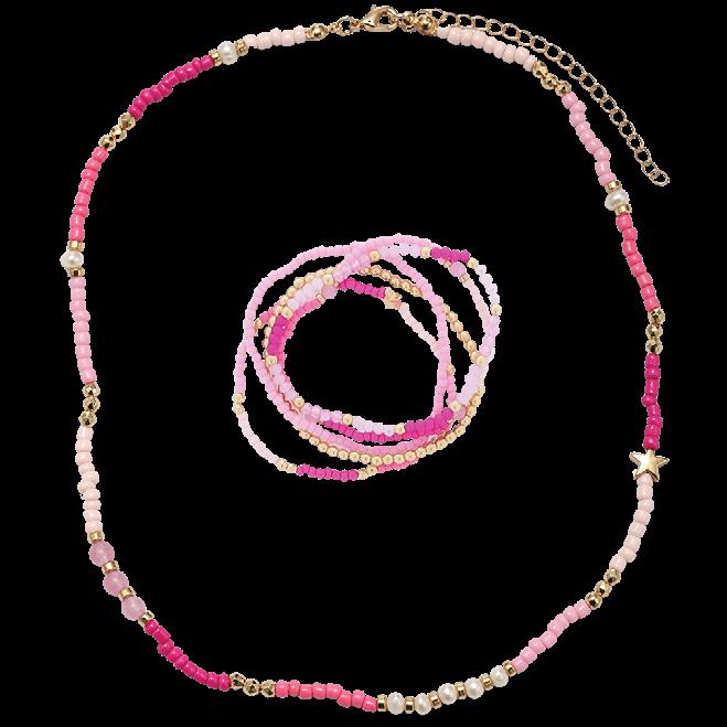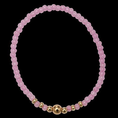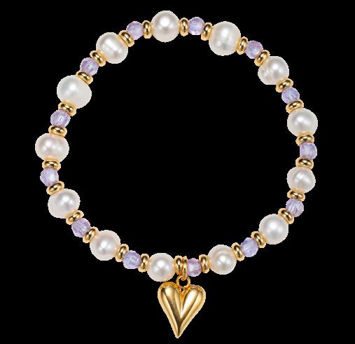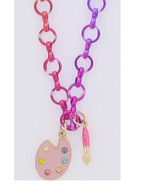 Kids 18k Gold Plated Chain with Heart Accent in Body Bracelet with Pink Epoxy Pendant, 6” Around with 2” Ext., .25” Pendant