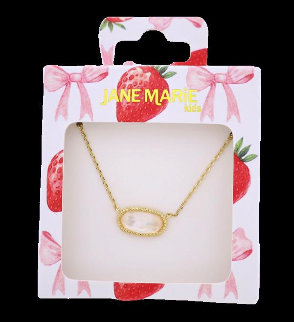 Kids 18k Gold Plated Chain Necklace with Bow Accent in Body with White, Pink Floral Epoxy Pendant, 14” Length with 3” Ext., .25” Pendant