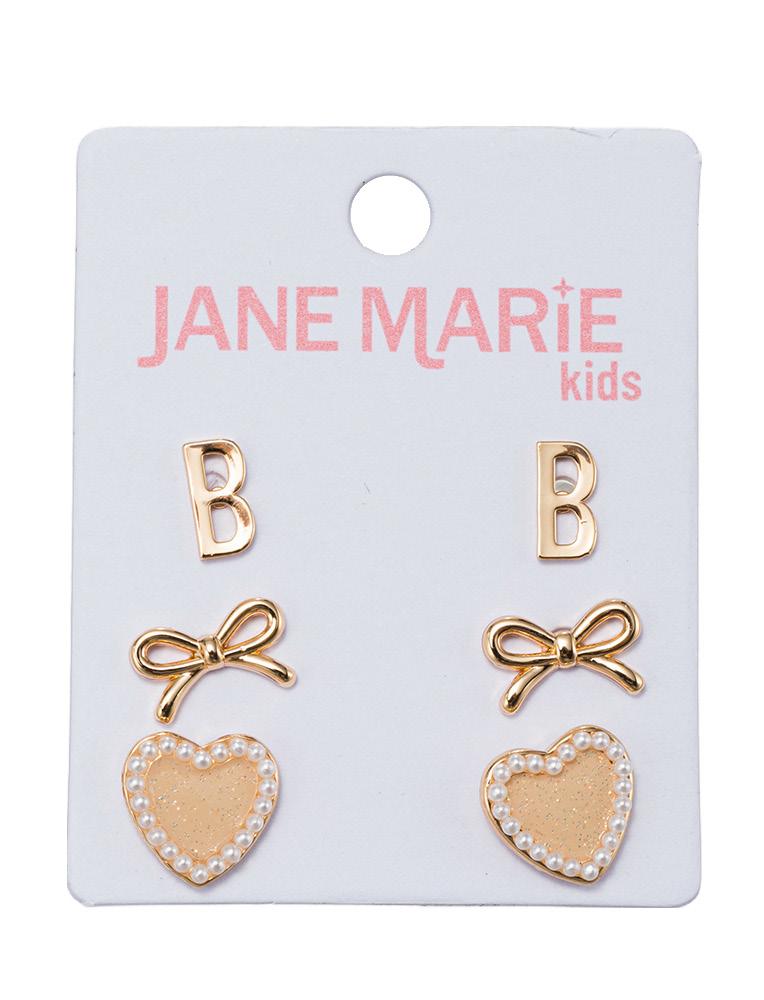 Kids 18K Gold Plated Set of 2 Heart & Bow Stud Earrings, .25”, .25”