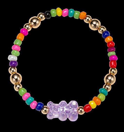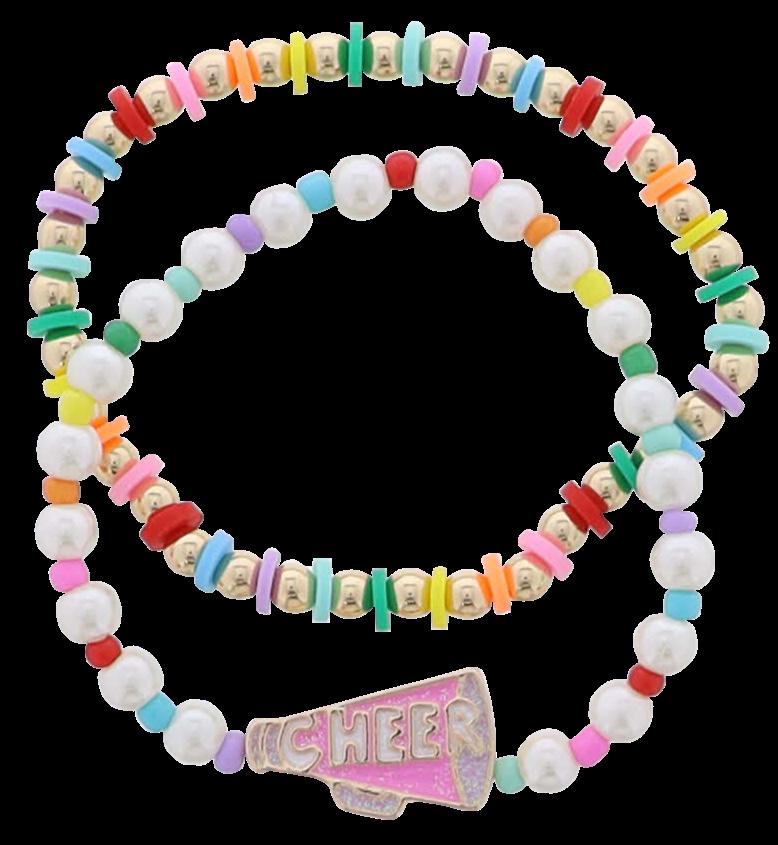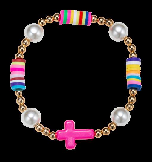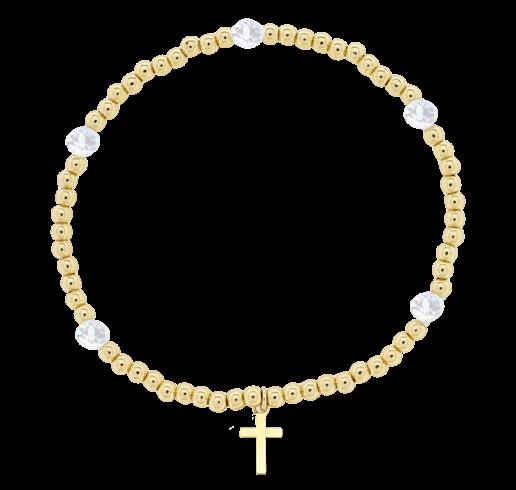 Kids 18K Gold Plated Gold & Clear Beaded Stretch Bracelet with Clear Crystal Cross, .5” Pendant
