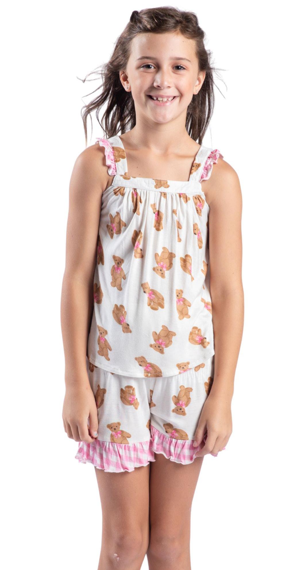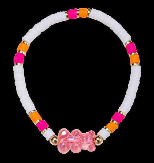 Kids 18k Gold Plated Chain with Bow Accent in Body Bracelet with White, Pink Floral Epoxy Pendant, 6” Around with 2” Ext., .25” Pendant