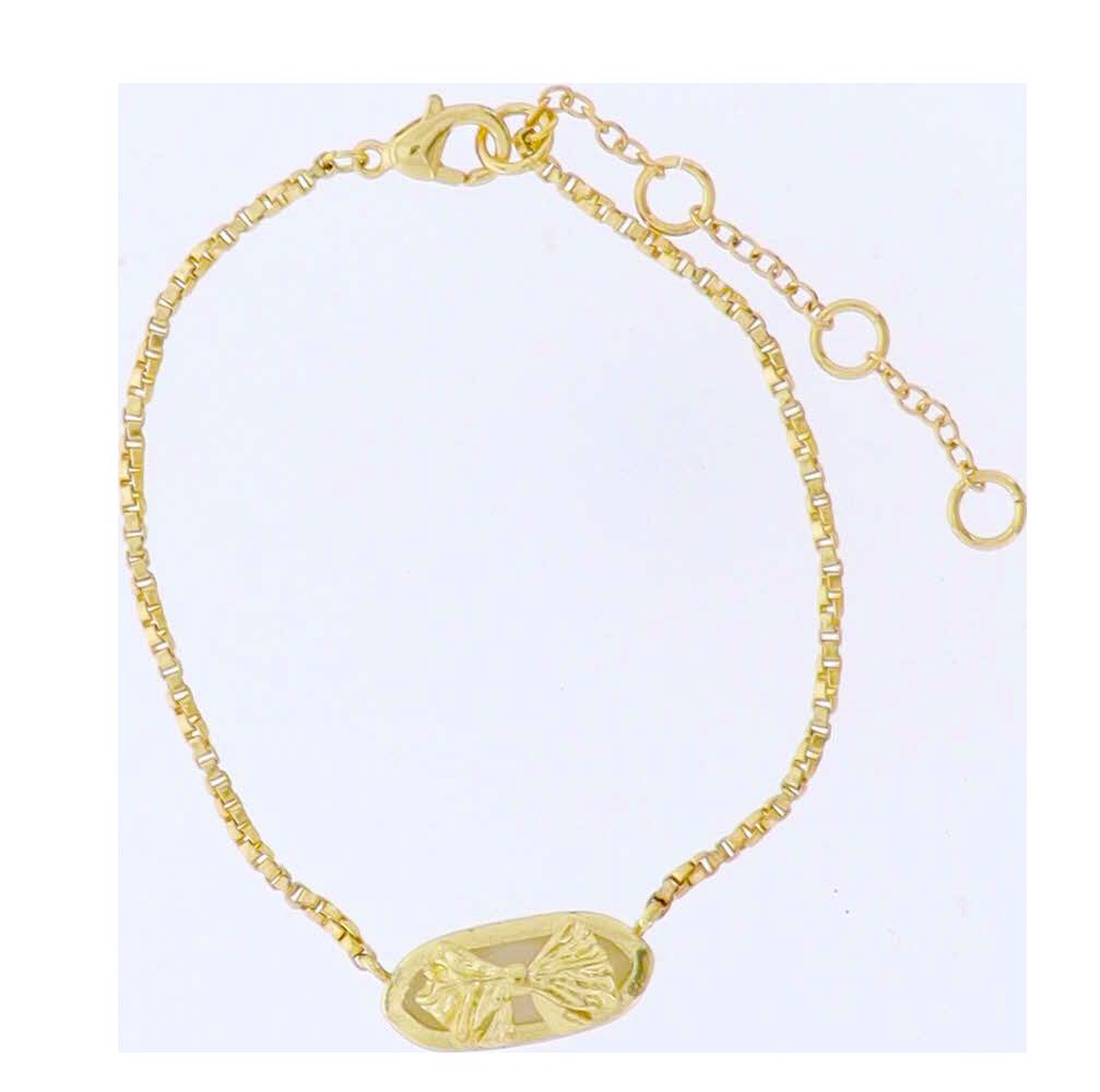 Kids 18k Gold Plated Chain Bracelet with Gold Bow Pendant, 6” Around with 2” Ext., .25” Pendant