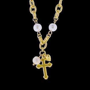 18k Gold Plated Chain with Pearl Accents Necklace and Cross, Heart, Pearl Charms, 16” Length with 3” Ext. $14.50 Each