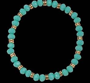 JM6740B-4 Pink, Tq Beaded Stretch Bracelet with Gold Spacers, 8” Around