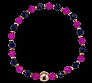 Navy, Blue, Pink Beaded Stretch Bracelet with Gold Spacers, 8” Around