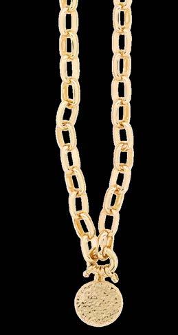 18k Gold Plated Round Disk, Oval Link Chain Necklace, 16” Length with 3” Ext.