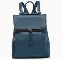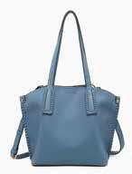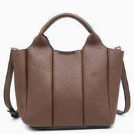 Faux suede satchel w/ whipstitch flapover & back zip pocket l Snap and zip closure l Removable shoulder strap/handle l Adjustable/removable crossbody strap M