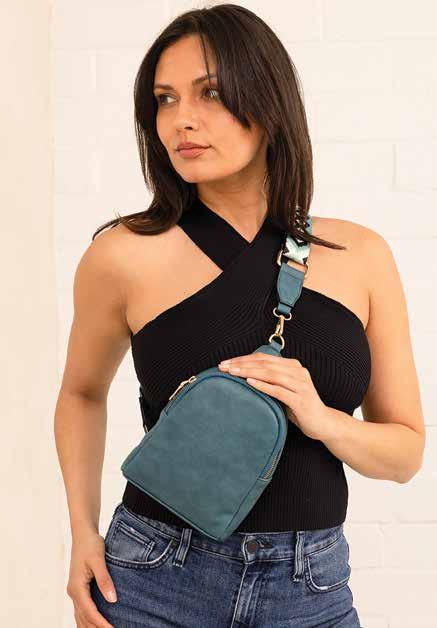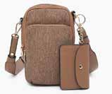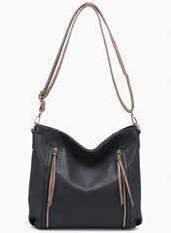 Two-tone faux suede crossbody w/ top zip closure l Removable shoulder strap l Adjustable/ removable crossbody strap INSIDE VIEW BACK VIEW