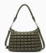 Quilted puffy crossbody w/ top zip closure l Knotted crossbody strap and knotted handle w/ metal accents