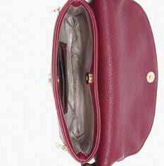 Faux suede shoulder crossbody bag w/ magnetic snap metal adornment closure l Back slip pocket l Inner bag l Removable shoulder strap & removable chain strap w/ vegan leather l Adjustable/ removable crossbody strap