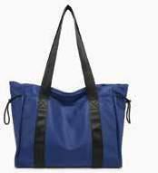 Quilted puffy nylon tote w/ top zip closure & back zip pocket l Vegan leather shoulder handle l Adjustable/removable nylon strap