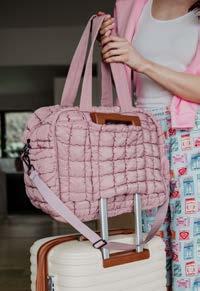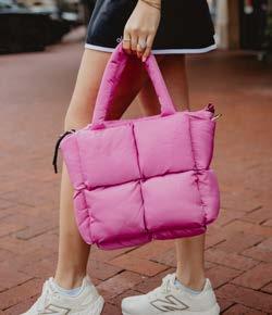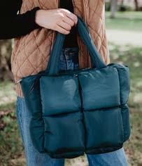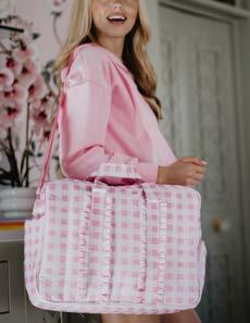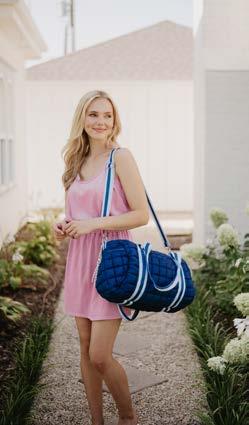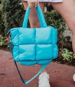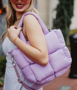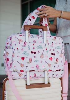 100% POLYESTER 20” X 8.5” X 12” ZIPPER CLOSURE INTERIOR POCKETS OVER THE SHOULDER STRAPS OPTIONAL CROSSBODY STRAPS WATER RESISTANT LINING