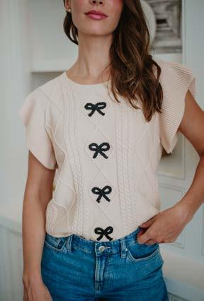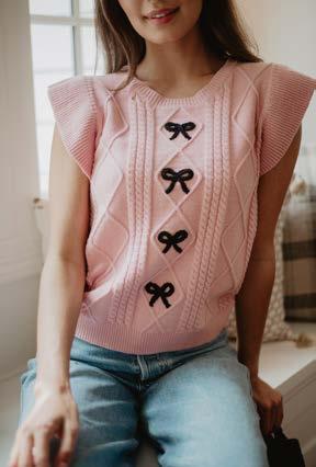 100% ACRYLIC CABLE KNIT SWEATER TOP CONTRAST BOWS