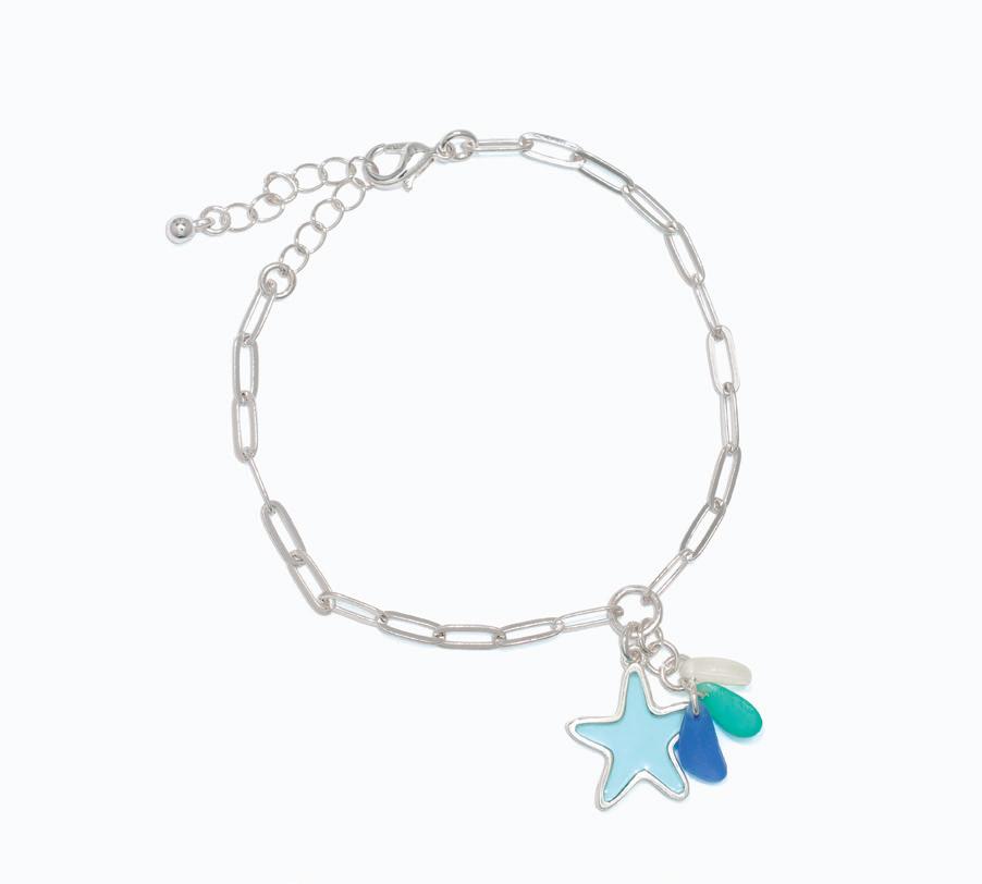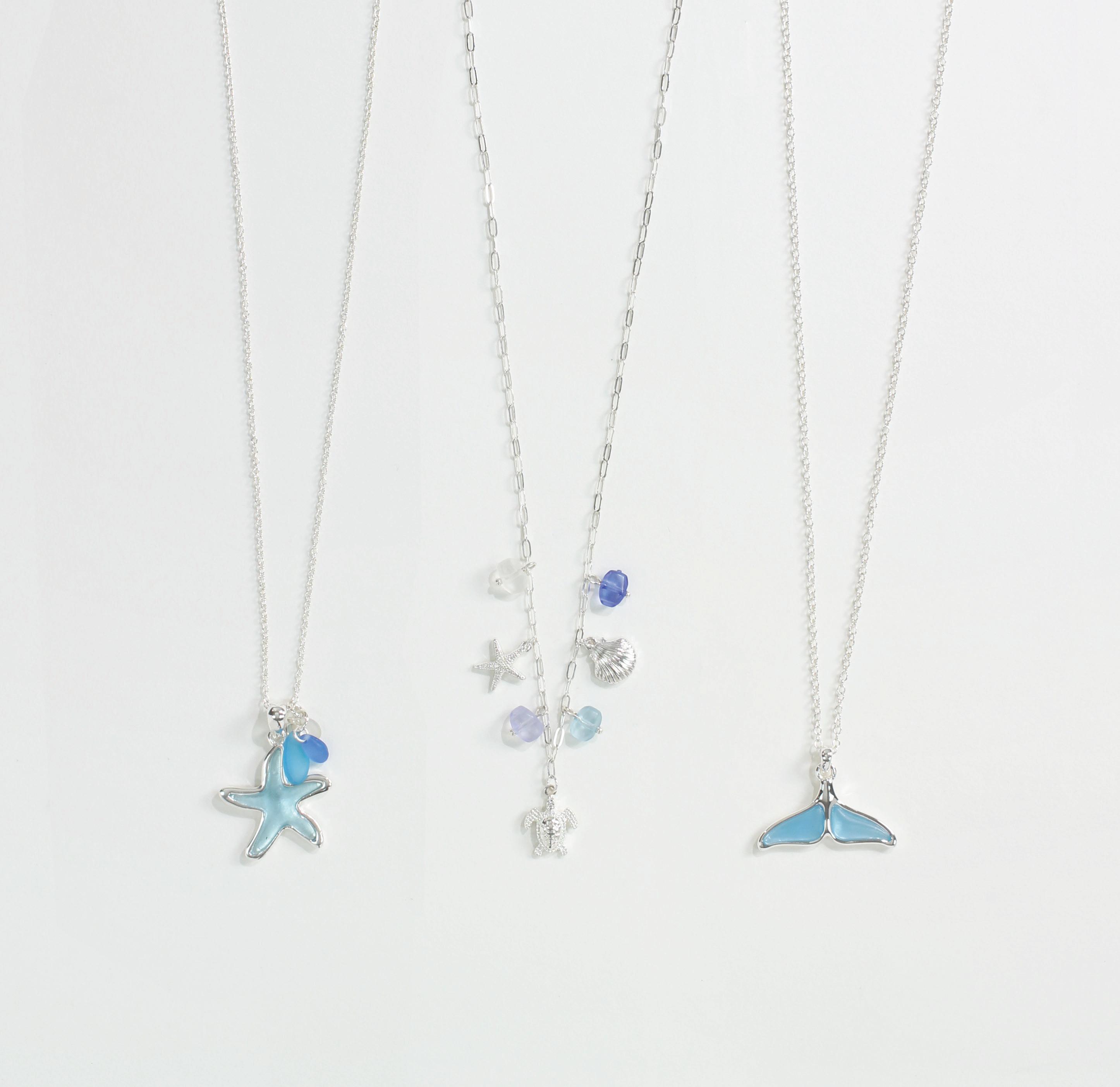 breezy silver wave with beautiful aqua crystal starfish • 18”