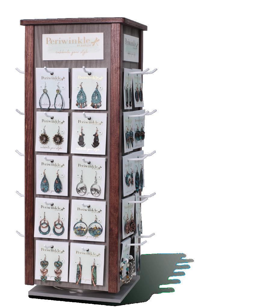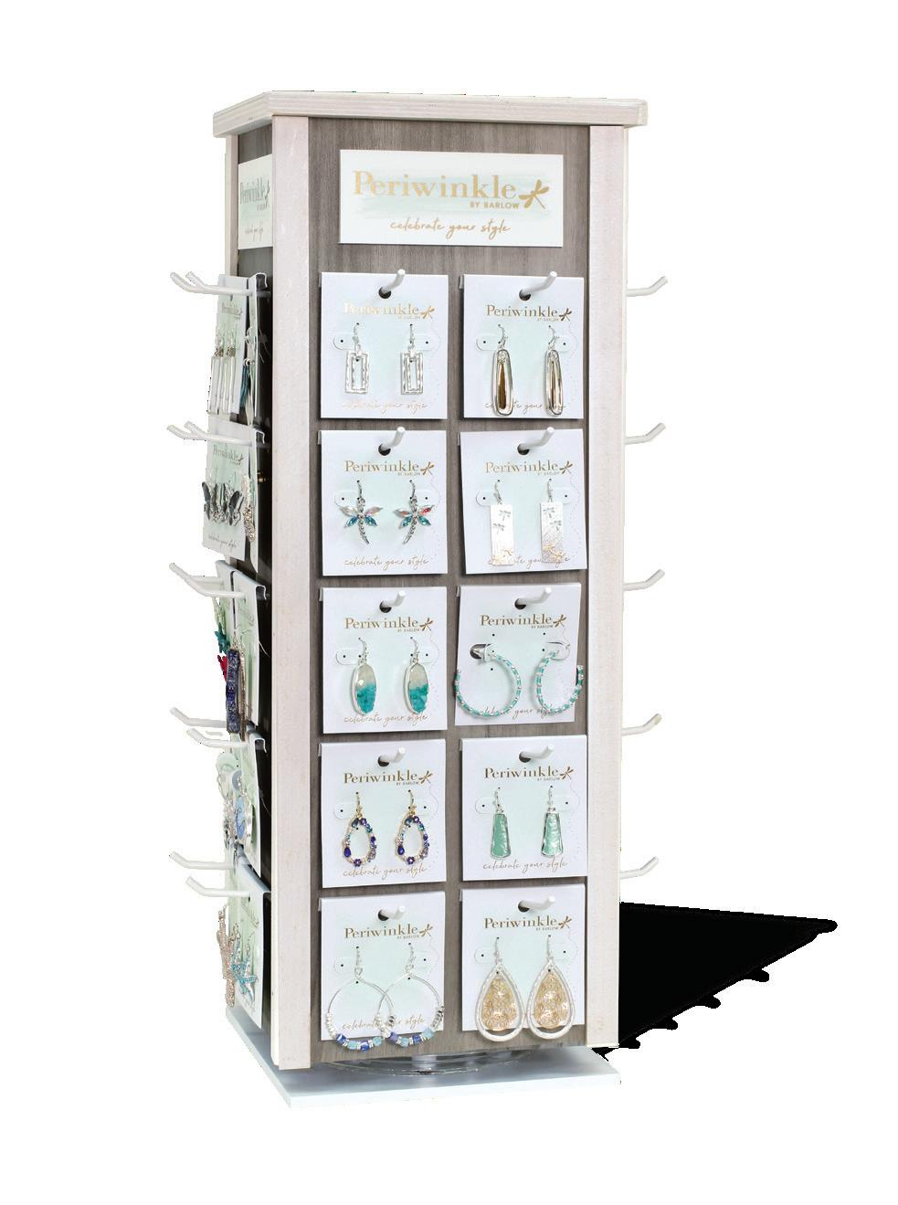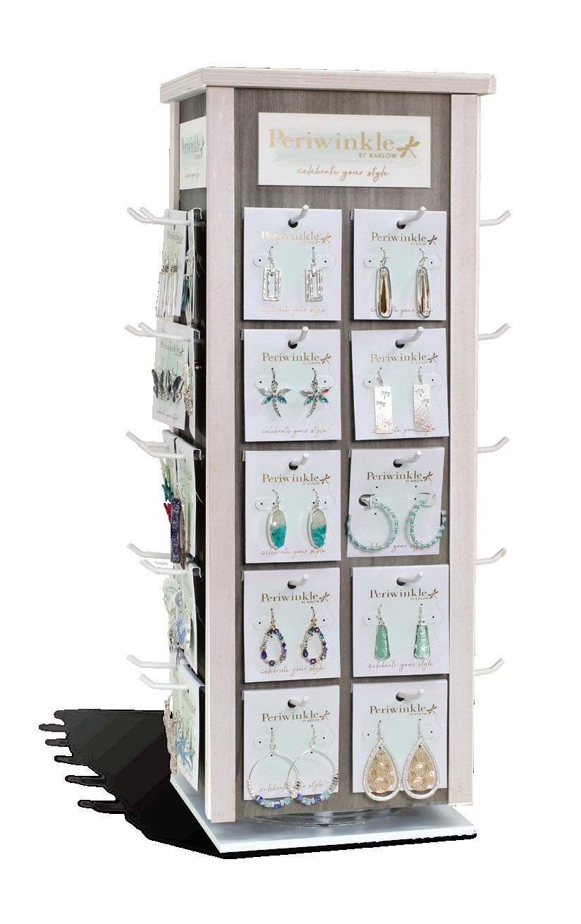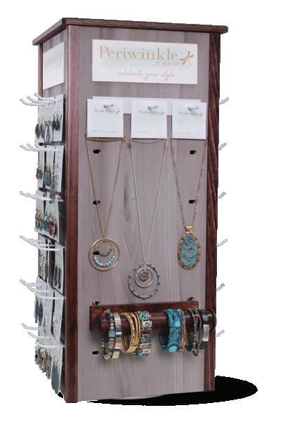 One side is an adjustable panel that can hold any combination of bracelets, necklaces, and carded items. Displays for use with Periwinkle product only.