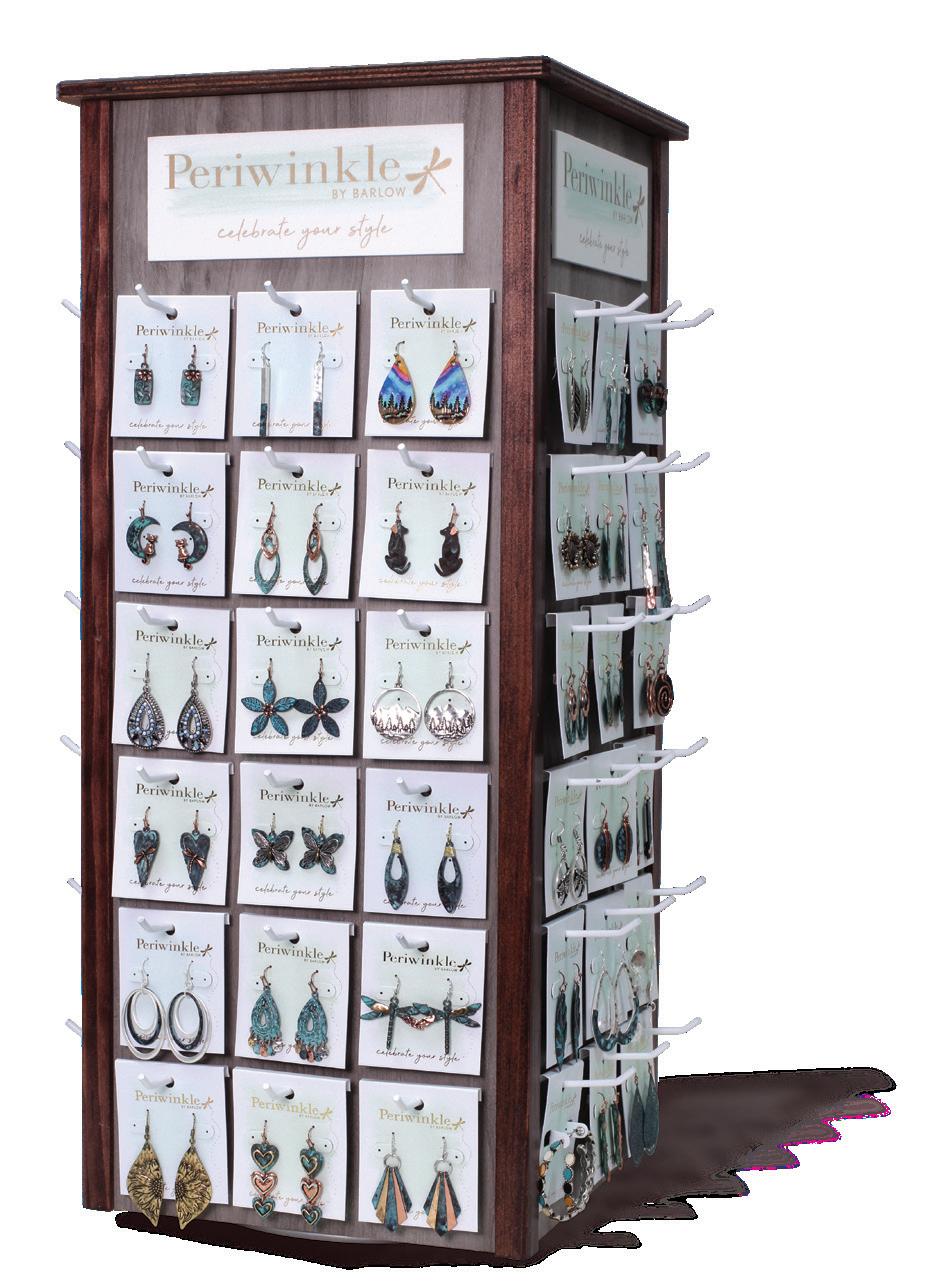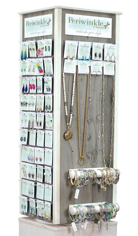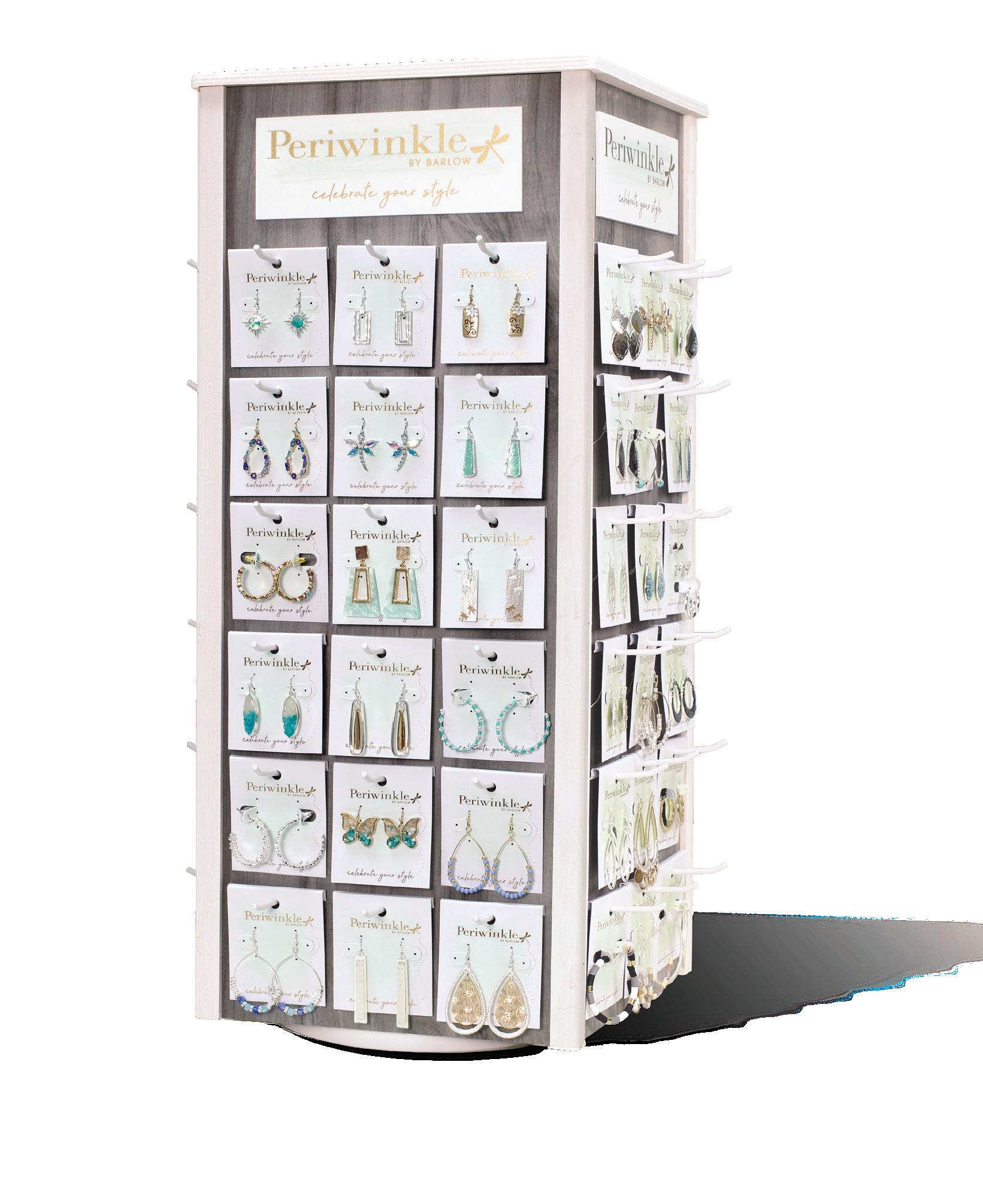 One side is an adjustable panel that can hold any combination of bracelets, necklaces, and carded items. Displays for use with Periwinkle product only.