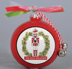 62135 ORN. W/ RIBBON, BELLS & GIFT BOX 3.5” DIA. $10.50 (min. 5)