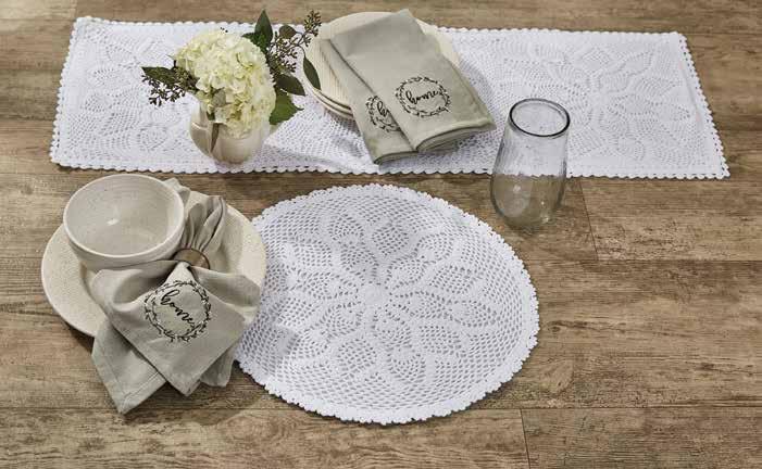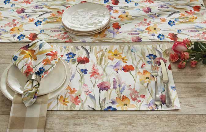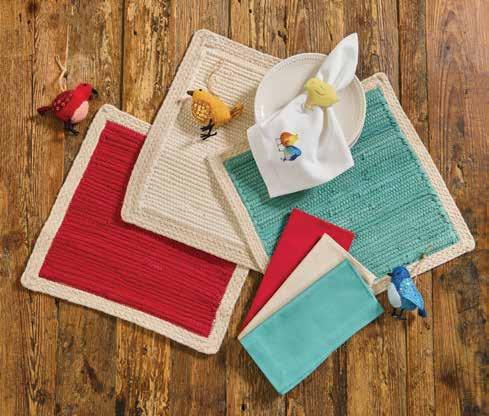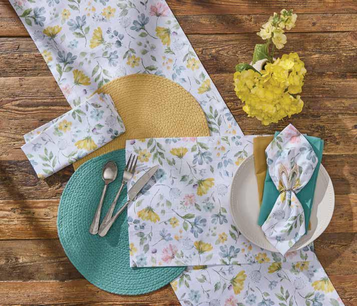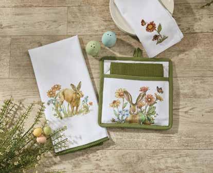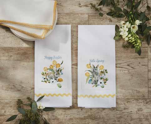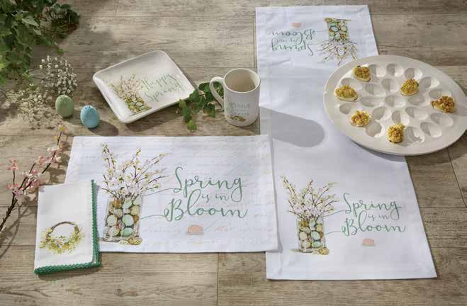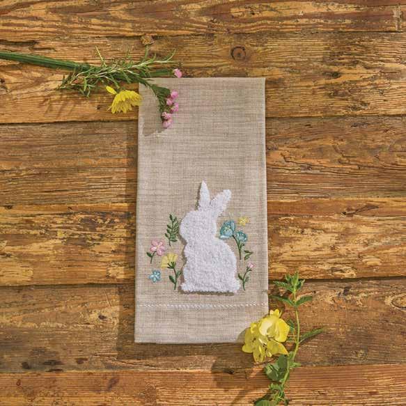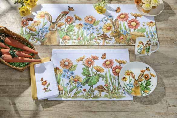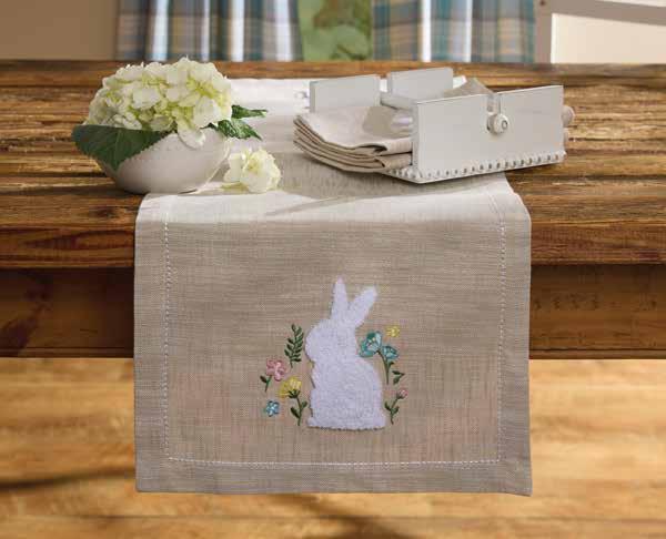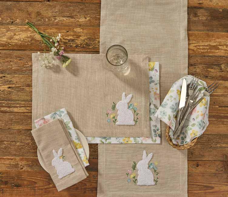6. Fuzzy Bunny #3955 Shown with Spring Flowers Napkin #2553-020. #010 Placemat 13" x 19" 012E0006X000 #020 Napkin 20" 012E0004X750 #106 Decorative Dishtowel 006E0006X000 #125 Table Runner 14" x 42" 002E0013X000 #525 Garland 6’ 002E0013X250