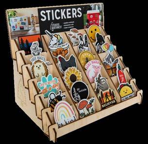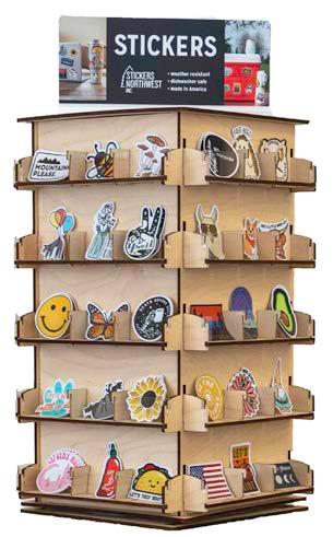 Upgrade countertop large to a floor display. 60 pocket display and rotating base included. Reorder any needed stickers for current display and 60 additional designs. Minimum of 60 sticker styles required.