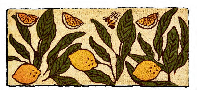 NEW! LEMONCELLO TEXTILES (Multi) Cotton. Hand screen printed satin weave, mitered corners. Folded, tied w twill tape, hang tag.