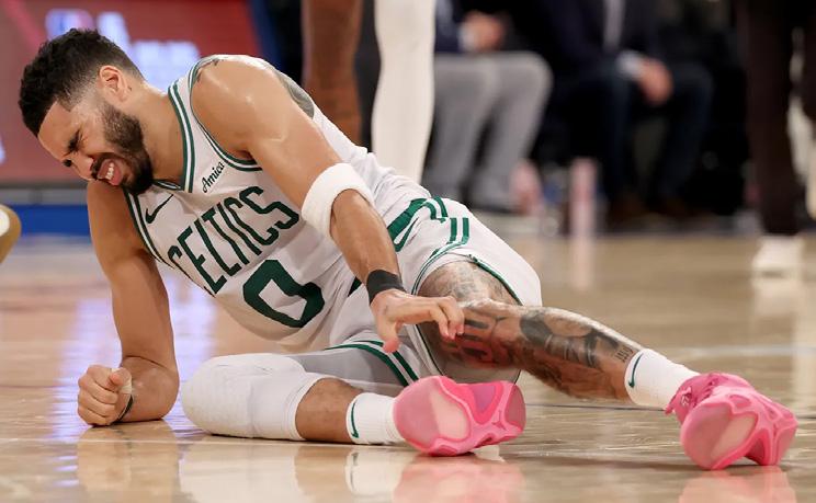 Heartbreaking news shook the sports world in Boston this year when Boston Celtics superstar Jayson Tatum fell to the oor clutching his achilles during the Eastern Conference Semi nals against the New York Knicks.