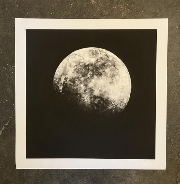 Waxing Gibbous Print by Abigail Reed from The Why Gallery small £40 Large £80 Recycled glass vases by Phaedra Politis from OWL from £20